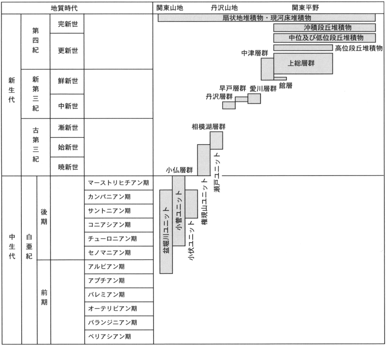 武蔵野台地の地下地質については,植木(2007e)に概説されている.本報告では,多摩丘陵及び多摩川沿いの低地,相模野台地の地下地質について,以下に記述する.