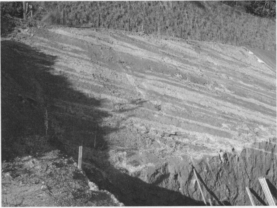 a, 砂岩頁岩互層.本沢ダム南東の道路沿い.