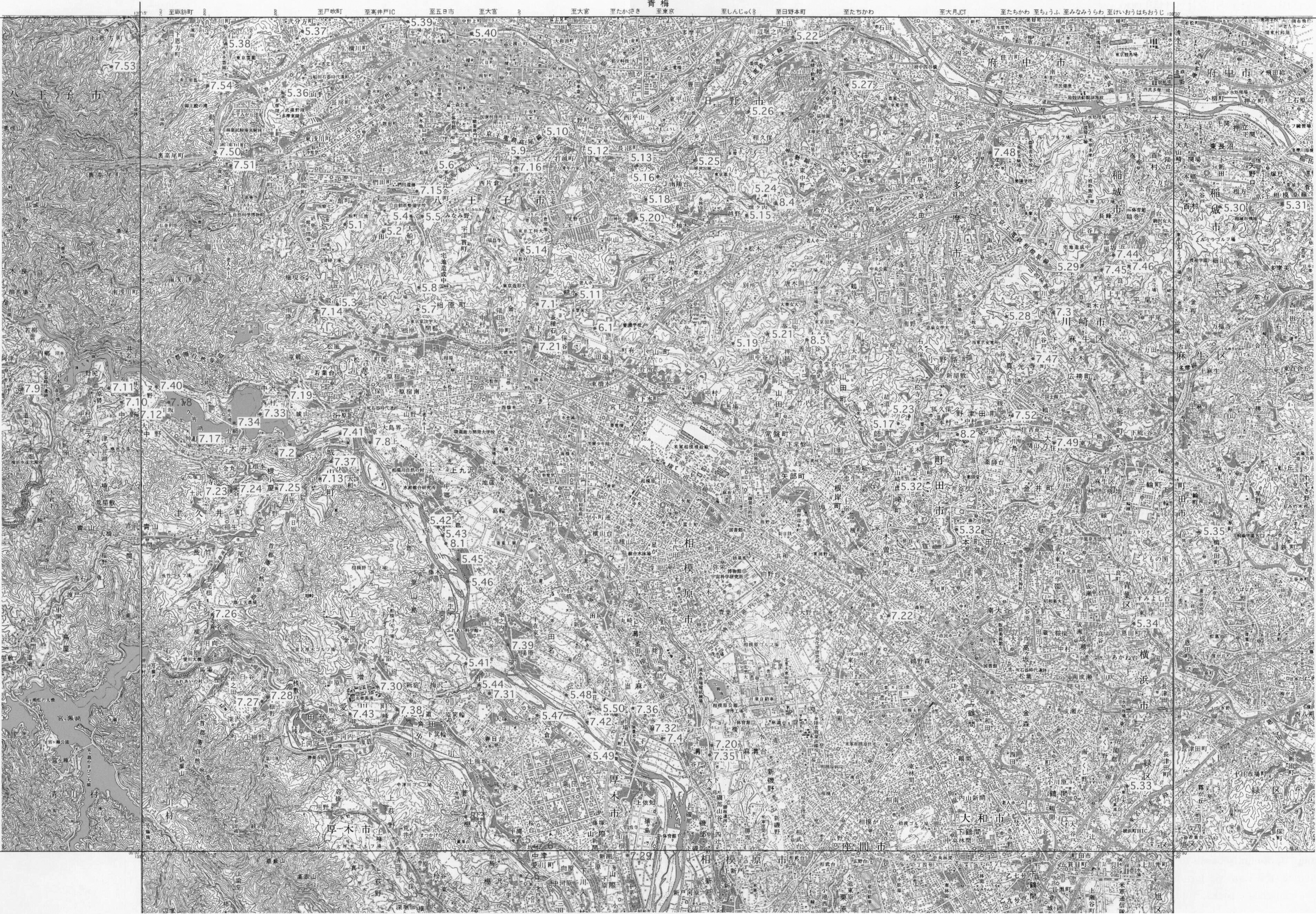 関東山地は,山梨県東部の甲武信ヶ岳(標高2,475m)を最高地点とするドーム状の大起伏山地である.八王子地域では,相模川中流部より北の関東山地は八王子市西部の高尾山を含み,標高は550m以下である.多摩川の支流の北浅川,浅川が谷を刻んでいる.